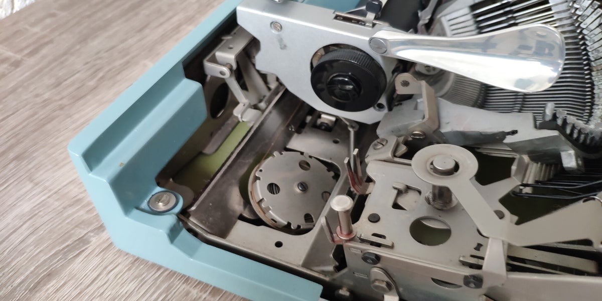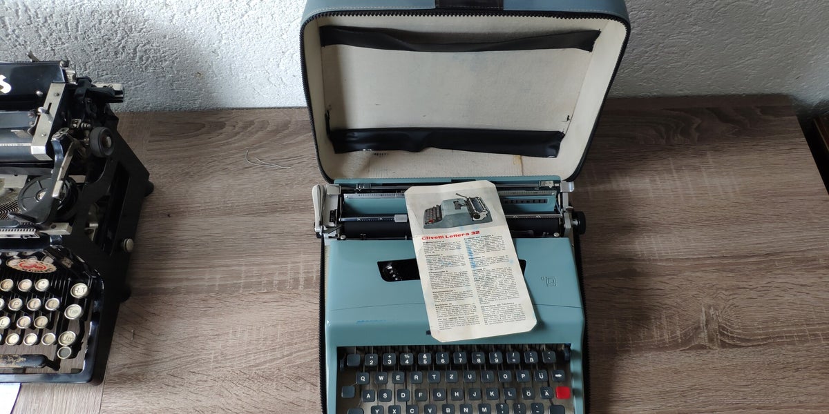 Technisch handelt es sich um eine klassische Typenhebelmaschine mit Vorderanschlag, die trotz ihrer kompakten Bauweise ein sehr direktes und sauberes Schriftbild liefert. Sie ist etwa 34 × 35 × 10 cm groß und wiegt rund 5,9 kg, wodurch sie zwar transportabel ist, aber schon spürbarer als sehr leichte Reiseschreibmaschinen ausfällt.