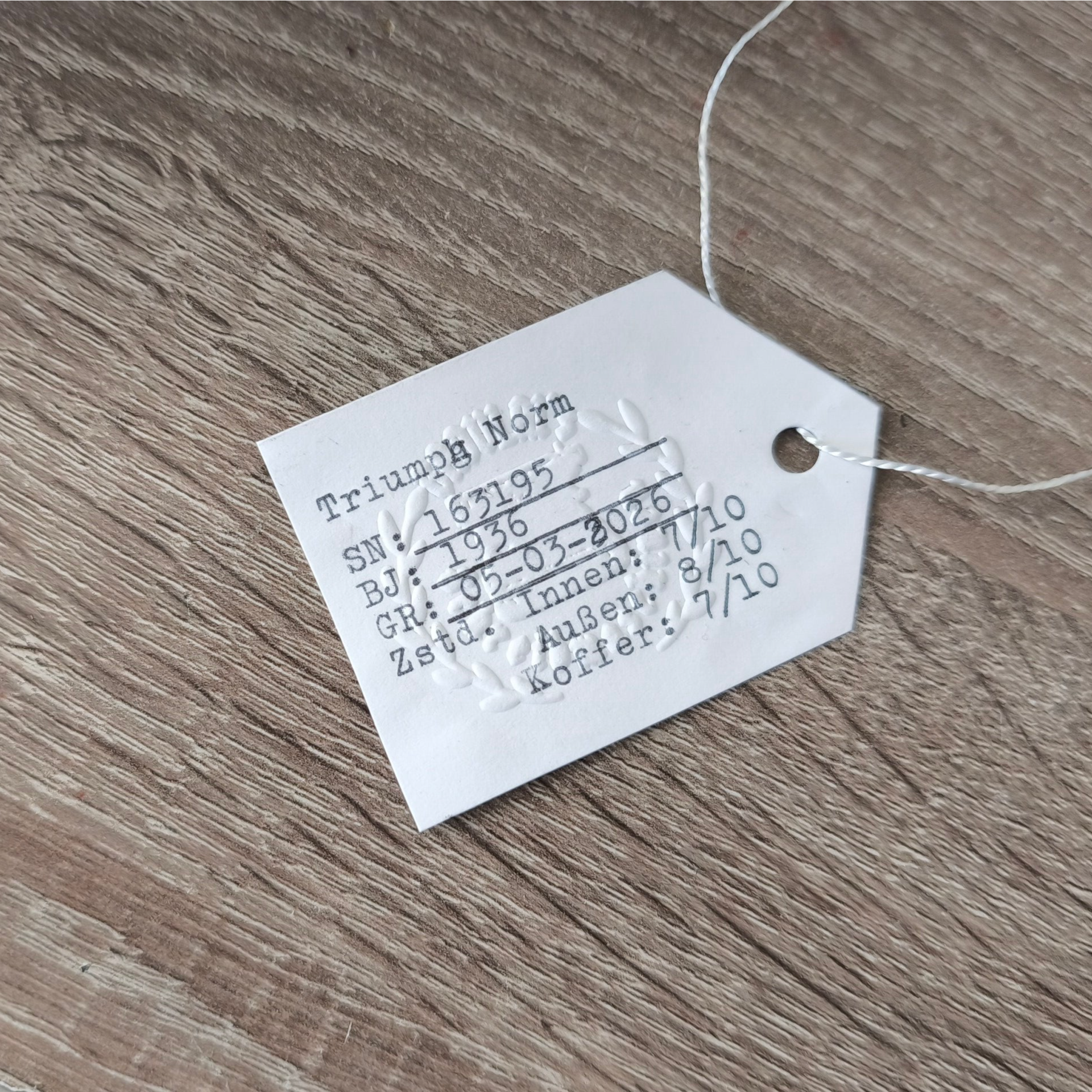 Die Triumph Norm legte den Grundstein für fast alle Triumph-Kofferschreibmaschinen und überzeugt nicht nur mit einem klassischen Design aus den 1930er-Jahren, sondern auch mit einer direkten und schlagkräftigen Mechanik. Durch diese Mechanik ist müheloses und langes Schreiben problemlos möglich. Auch das Schriftbild ist für das Alter sehr sauber und ordentlich.