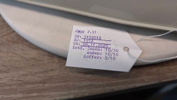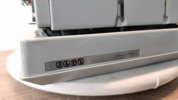 Die P.91 von Japy ist ein sehr seltener Lizenzbau der schweizer Hermes 3000. Die Hermes 3000 gilt unter Schreibmaschinenliebhabern und Sammlern als eine der beliebtesten und angesehensten Modelle überhaupt – und das zu Recht. Ihr exzellentes Schreibgefühl, kombiniert mit einer simplen, aber immernoch robusten Mechanik, macht sie zu einem echten Klassiker, der bis heute nichts von seiner Faszination verloren hat.