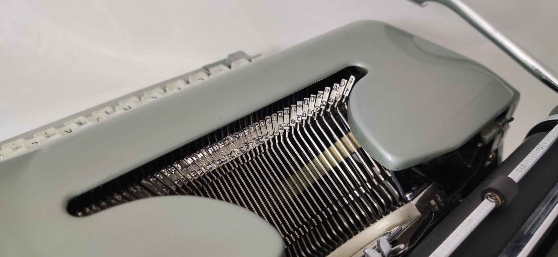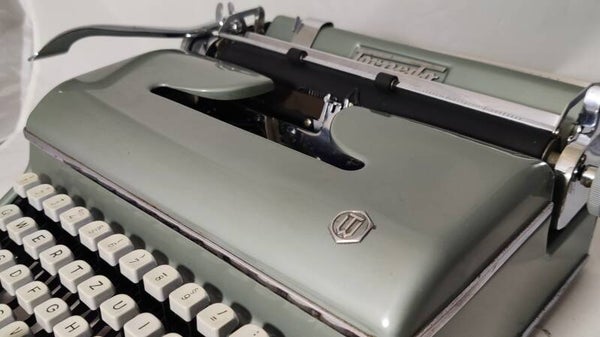 Zum Verkauf steht eine Torpedo Modell 18a aus dem Jahr 1953 – eine der erfolgreichsten Kofferschreibmaschinen aus dem Hause Torpedo. Die Entwicklung dieses Modells begann bereits vor dem Zweiten Weltkrieg und setzte sich erfolgreich bis in die späten 1960er-Jahre fort. Bei diesem Exemplar handelt es sich um die erste Nachkriegsversion, die durch ihr klassisches Design und ihre zuverlässige Technik überzeugt.