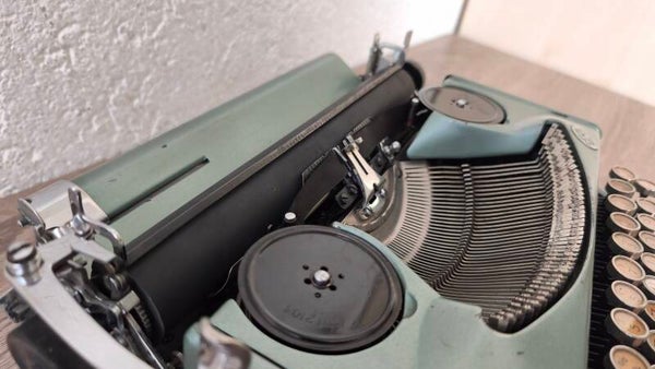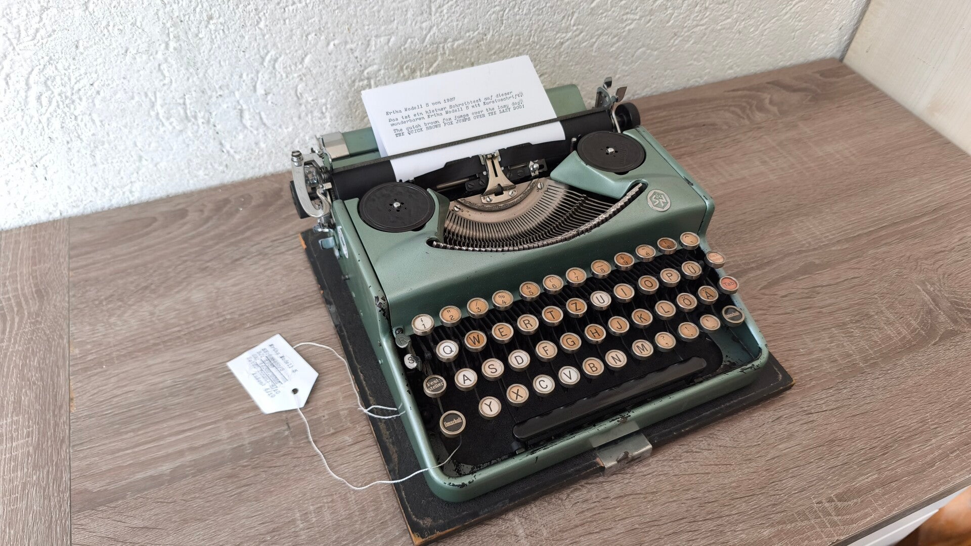 Die Besonderheit dieser Maschine ist, dass sie mit einer Kursivschrift ausgestattet ist. Das ist bei Erika sehr selten und entsprechend beliebt. Zudem wurde sie zum Schutz der Typen mit neuen Walzen ausgestattet, sowohl mit einer neuen Schreibwalze als auch mit neuen Gegendruckwalzen.
