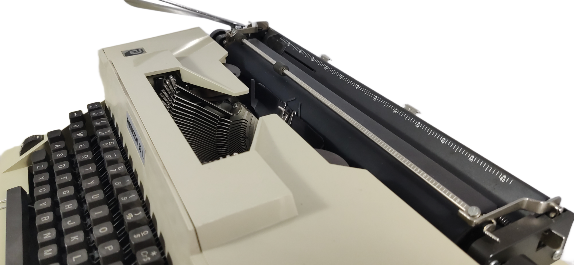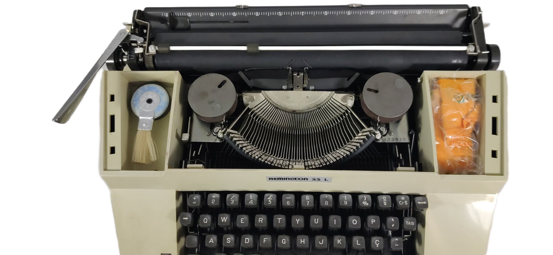 Zum Verkauf steht eine Remington 33L aus den späten 1990er‐Jahren, gefertigt in Brasilien. Dieses Modell gehört zu den letzten produzierten Schreibmaschinen überhaupt. Auch wenn ihr Design sicher nicht jeden Geschmack trifft, überzeugt sie mechanisch durch solide Umsetzung und ein angenehm leichtgängiges Schreibgefühl.