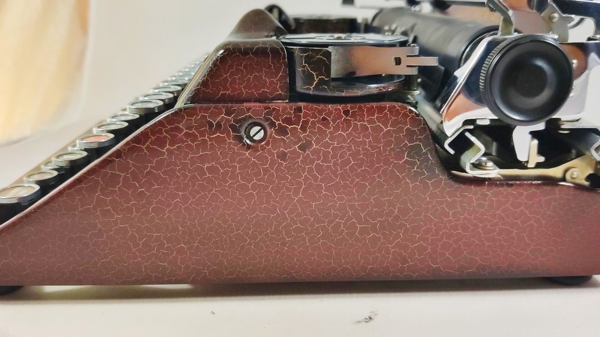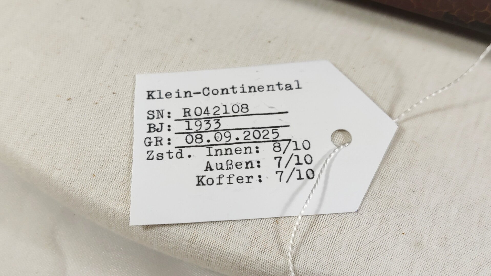Diese Klein-Continental ist ein echtes Sammlerstück: Sie wurde in einer äußerst seltenen Lackvariante gefertigt, von der nur wenige Exemplare überhaupt auf den Markt kamen. Der Lack besticht nicht nur durch sein auffälliges Rot mit goldfarbenen Rissstrukturen, sondern auch durch einen changierenden Farbeffekt – je nach Stelle der Maschine variiert der Rotton.